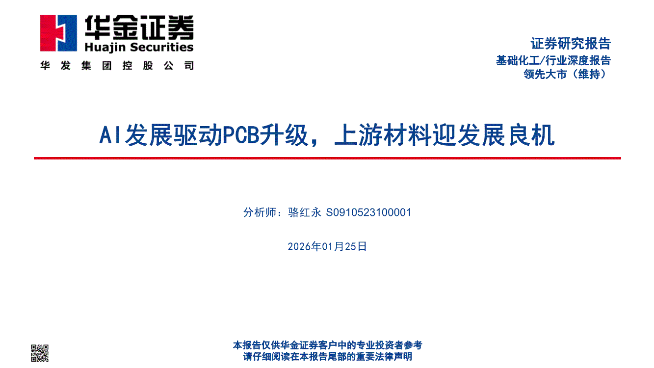 基础化工行业:华金证券-基础化工行业深度报告:AI发展驱动PCB升级,上游材料迎发展良机-260125