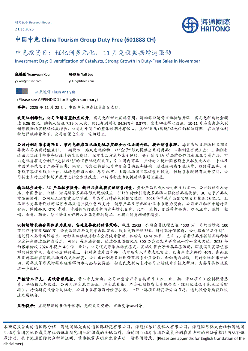 中国中免:海通国际-中国中免-601888-中免投资日:催化剂多元化,11月免税数据增速强劲-251202