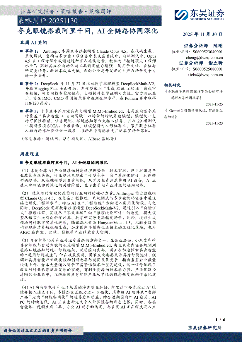 东吴证券-策略周评:夸克眼镜搭载阿里千问,AI全链路协同深化-251130