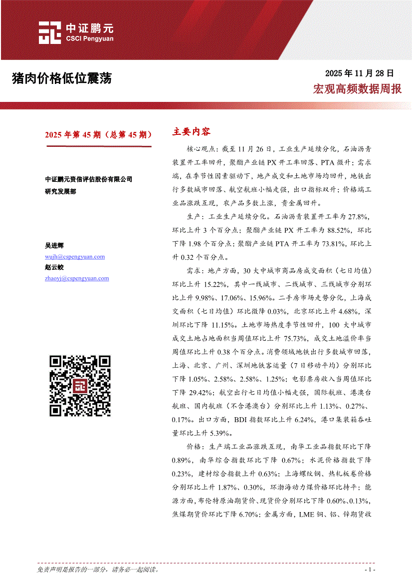 中证鹏元-宏观高频数据周报:猪肉价格低位震荡-251128