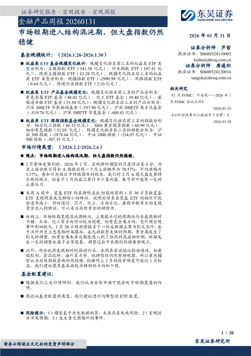 东吴证券-金融产品周报:市场短期进入结构混沌期,但大盘指数仍然稳健-260131