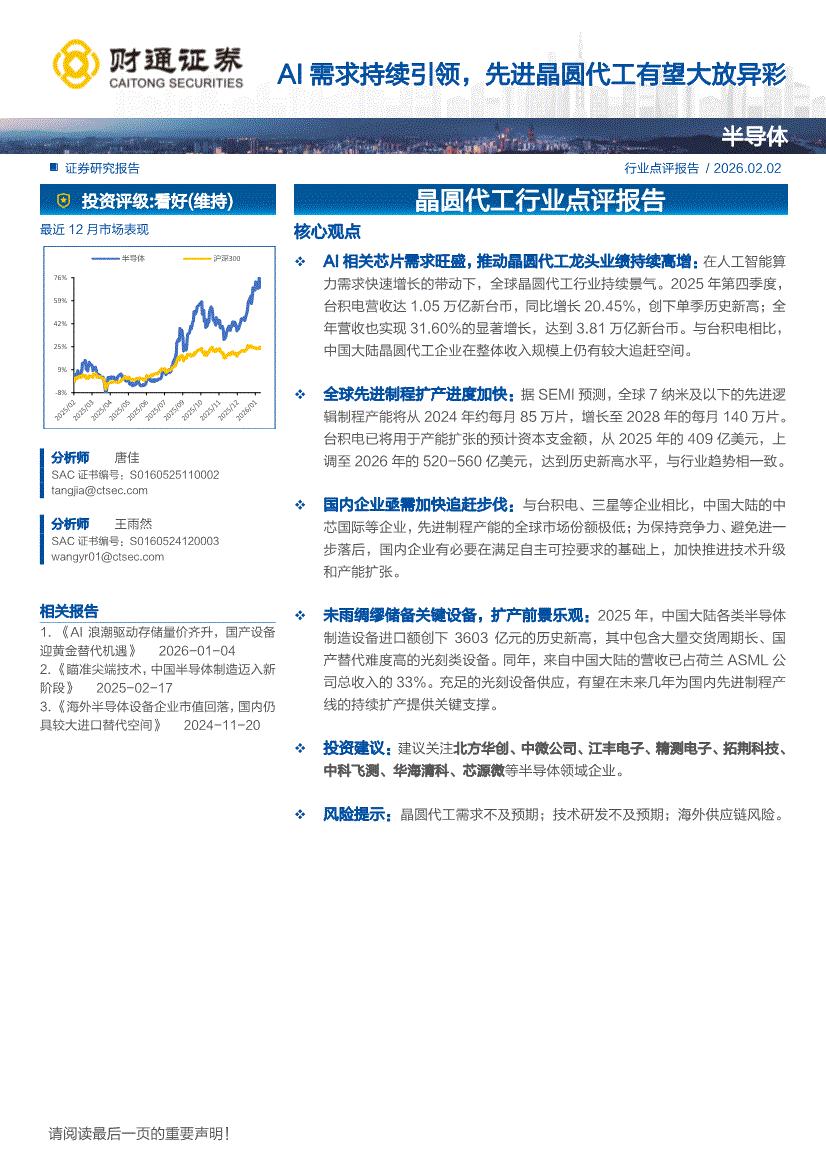 半导体行业:财通证券-半导体行业:AI需求持续引领,先进晶圆代工有望大放异彩-260202