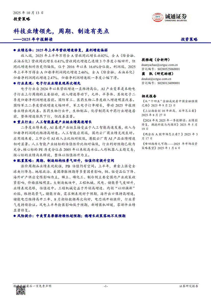 诚通证券-2025年中报解读:科技业绩领先,周期、制造有亮点-251015