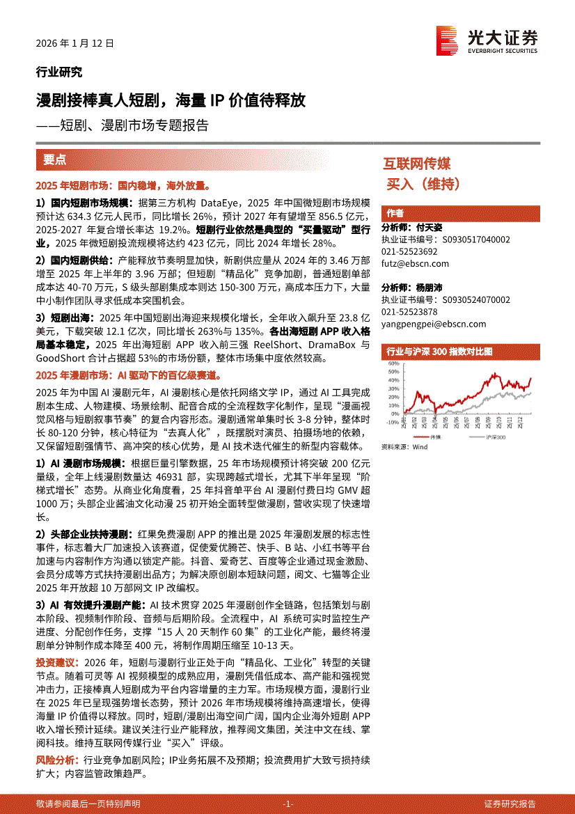 互联网传媒行业:光大证券-互联网传媒行业短剧、漫剧市场专题报告:漫剧接棒真人短剧,海量IP价值待释放-260112
