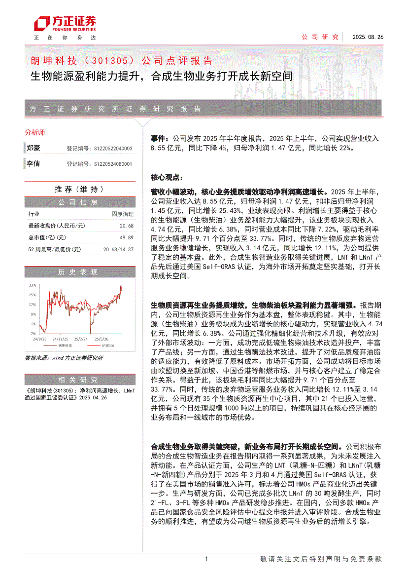 朗坤科技:方正证券-朗坤科技-301305-公司点评报告:生物能源盈利能力提升,合成生物业务打开成长新空间-250826