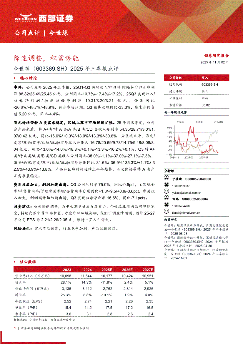 今世缘:西部证券-今世缘-603369-2025年三季报点评:降速调整,积蓄势能-251102