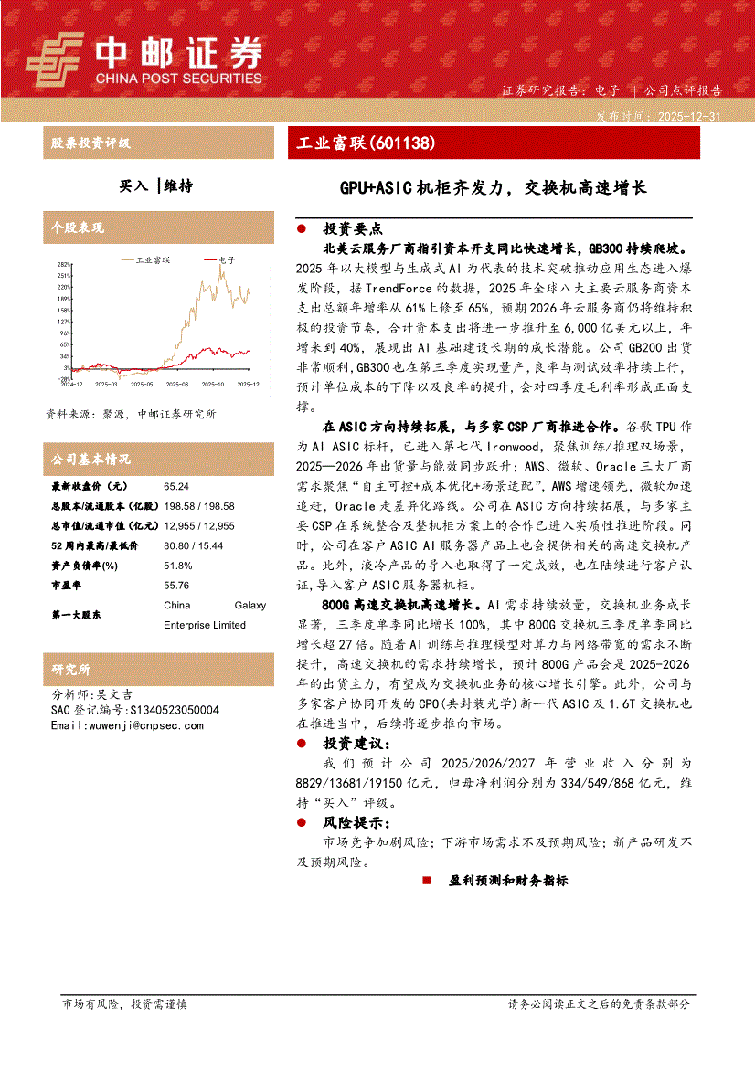 工业富联:中邮证券-工业富联-601138-GPU+ASIC机柜齐发力,交换机高速增长-251231