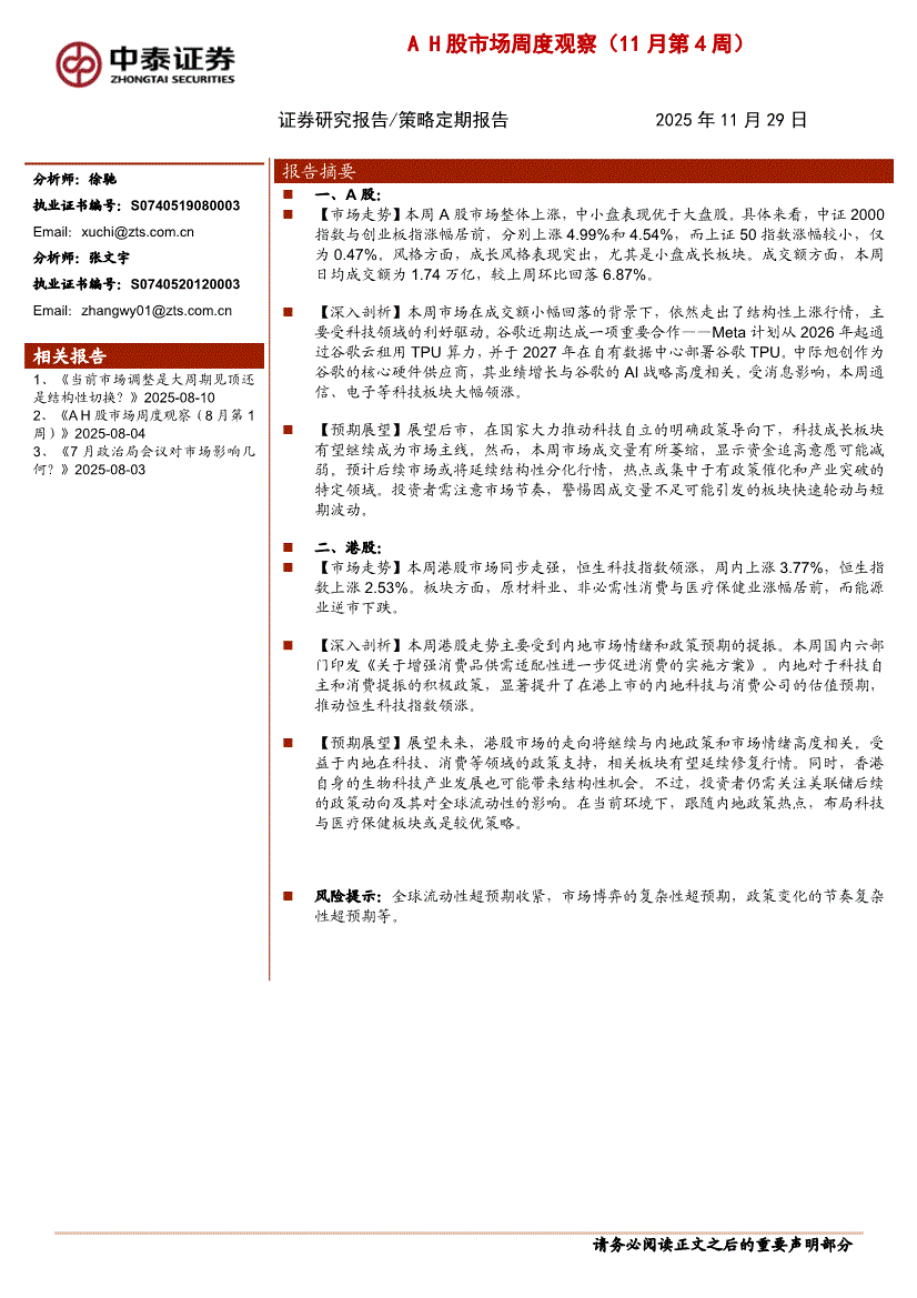 中泰证券-AH股市场周度观察(11月第4周)-251129