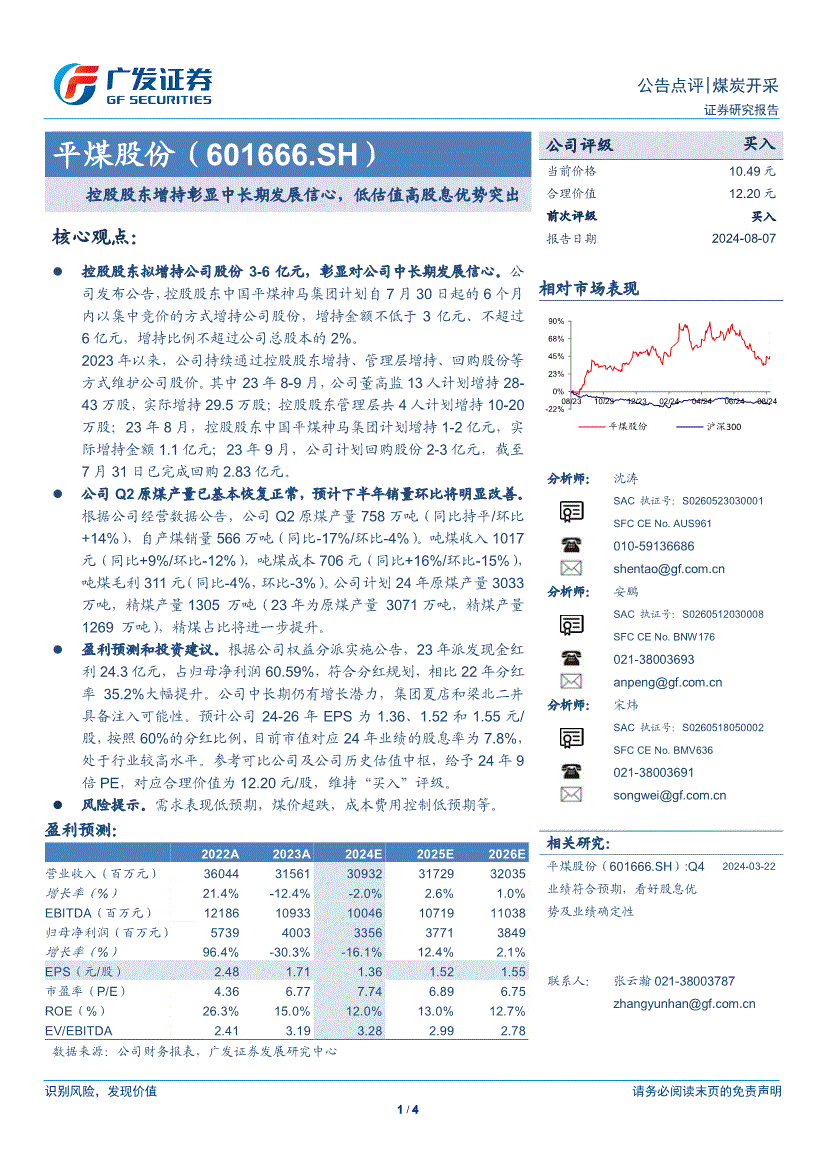 平煤股份:广发证券-平煤股份-601666-控股股东增持彰显中长期发展信心,低估值高股息优势突出-240807
