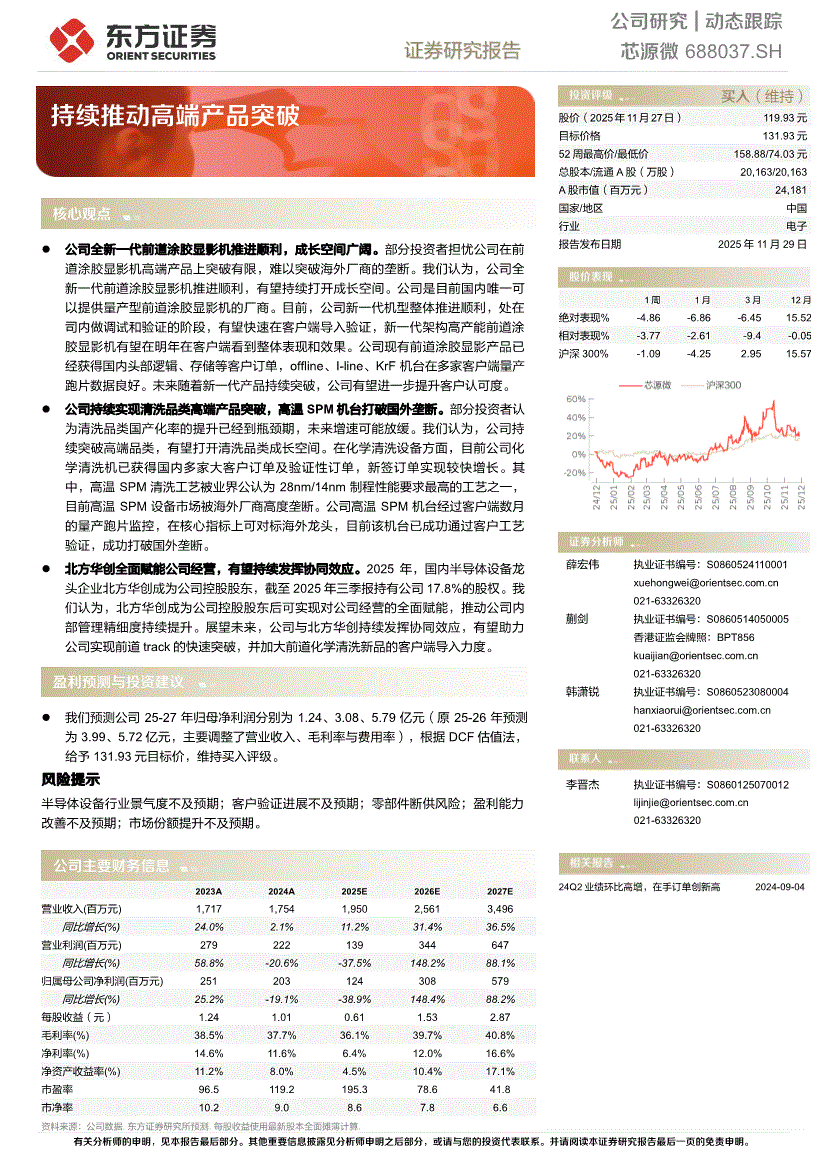 芯源微:东方证券-芯源微-688037-持续推动高端产品突破-251129