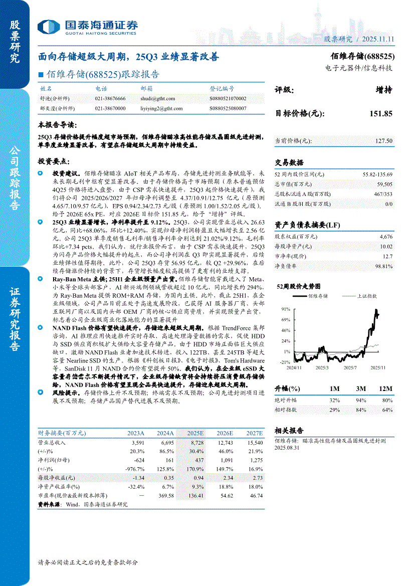 佰维存储:国泰海通证券-佰维存储-688525-跟踪报告:面向存储超级大周期,25Q3业绩显著改善-251111