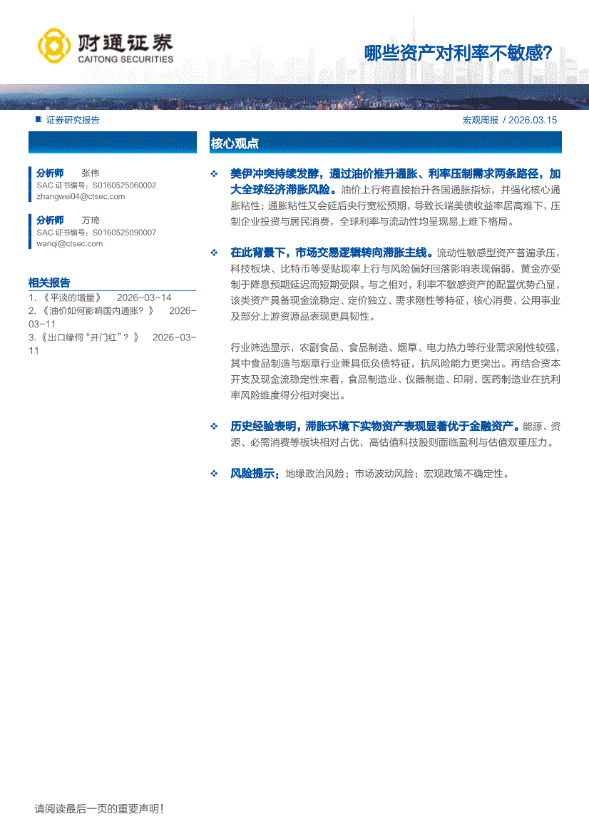 财通证券-宏观周报:哪些资产对利率不敏感?-260315