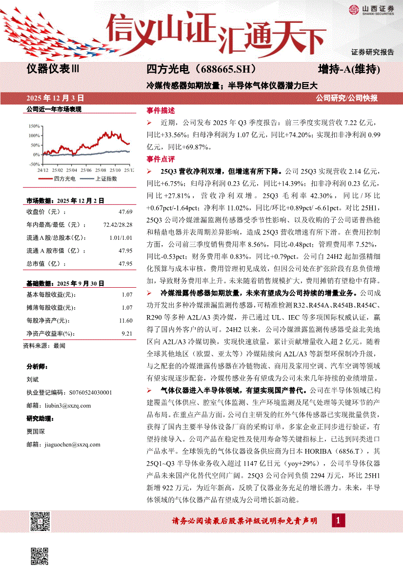 山西证券-四方光电-688665-冷媒传感器如期放量;半导体气体仪器潜力巨大-251203