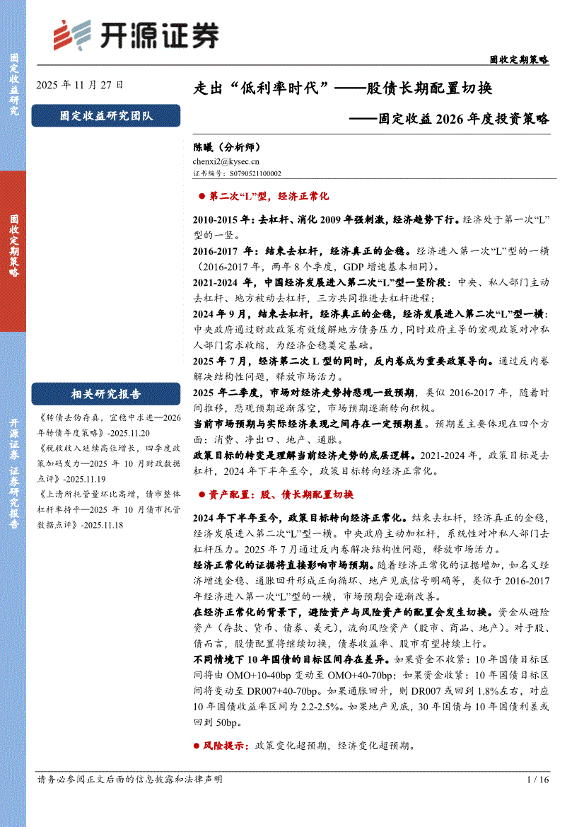 开源证券-固定收益2026年度投资策略:走出“低利率时代”——股债长期配置切换-251127