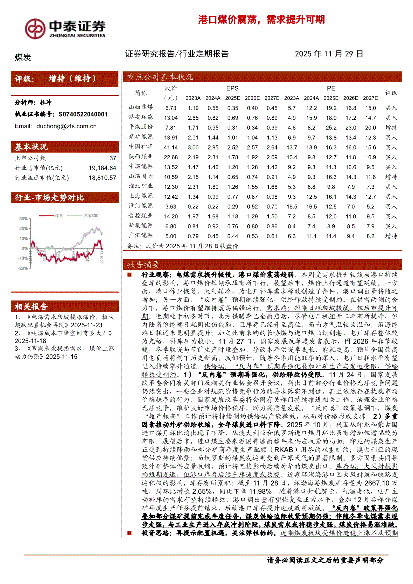 煤炭行业:中泰证券-煤炭行业:港口煤价震荡,需求提升可期-251129
