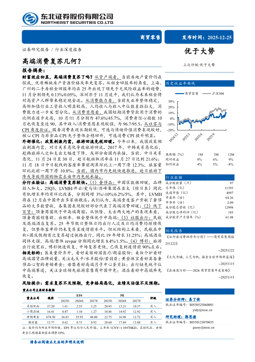 商贸零售行业:东北证券-商贸零售行业:高端消费复苏几何?-251225