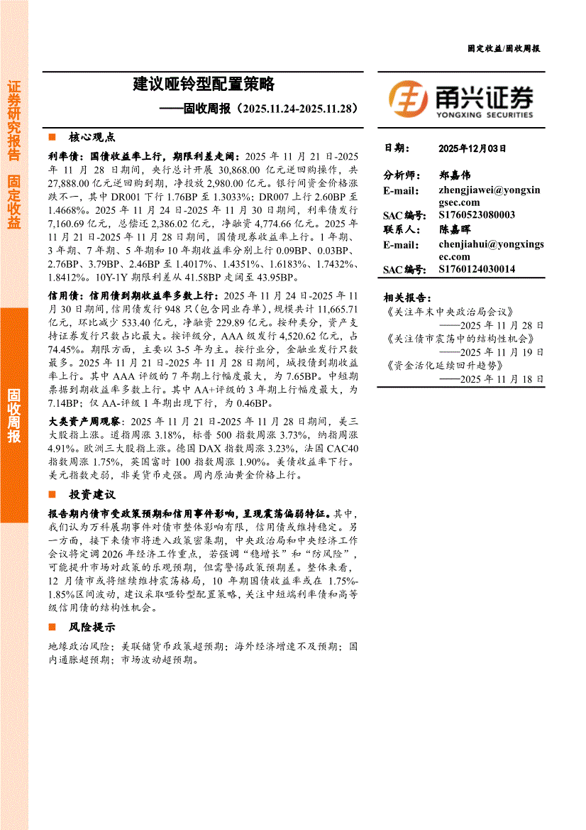 甬兴证券-固收周报:建议哑铃型配置策略-251203