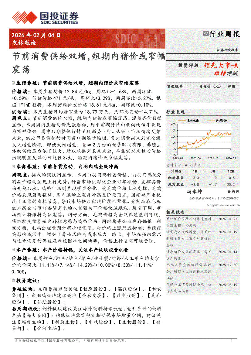 农林牧渔行业:国投证券-农林牧渔行业周报:节前消费供给双增,短期内猪价或窄幅震荡-260204