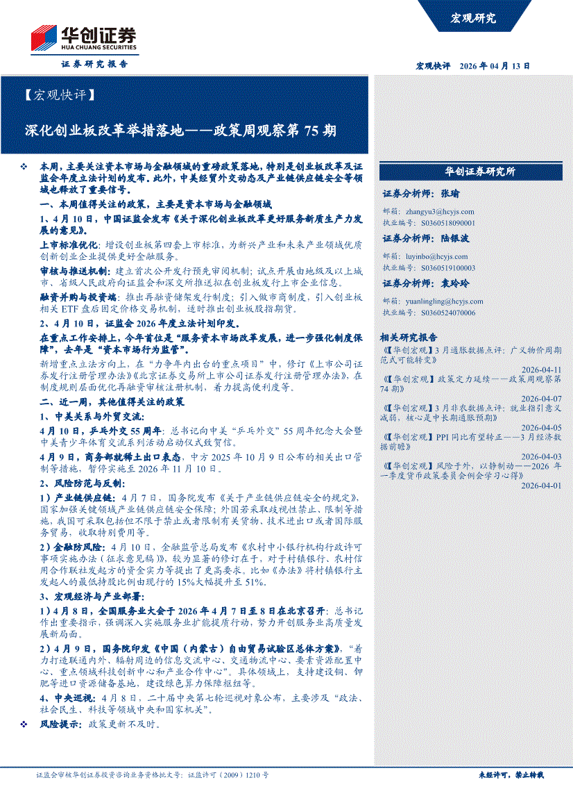 华创证券-【宏观快评】深化创业板改革举措落地——政策周观察第75期-260413
