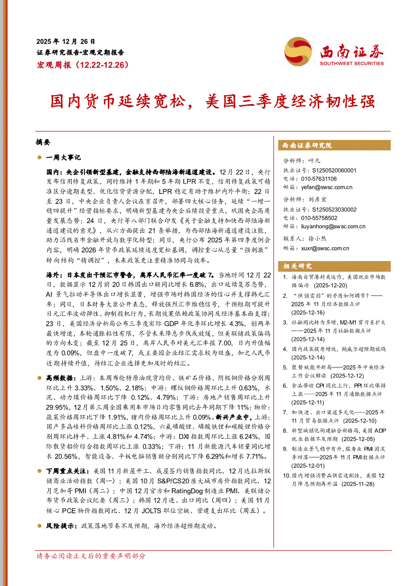 西南证券-宏观周报(12.22~12.26):国内货币延续宽松,美国三季度经济韧性强-251226