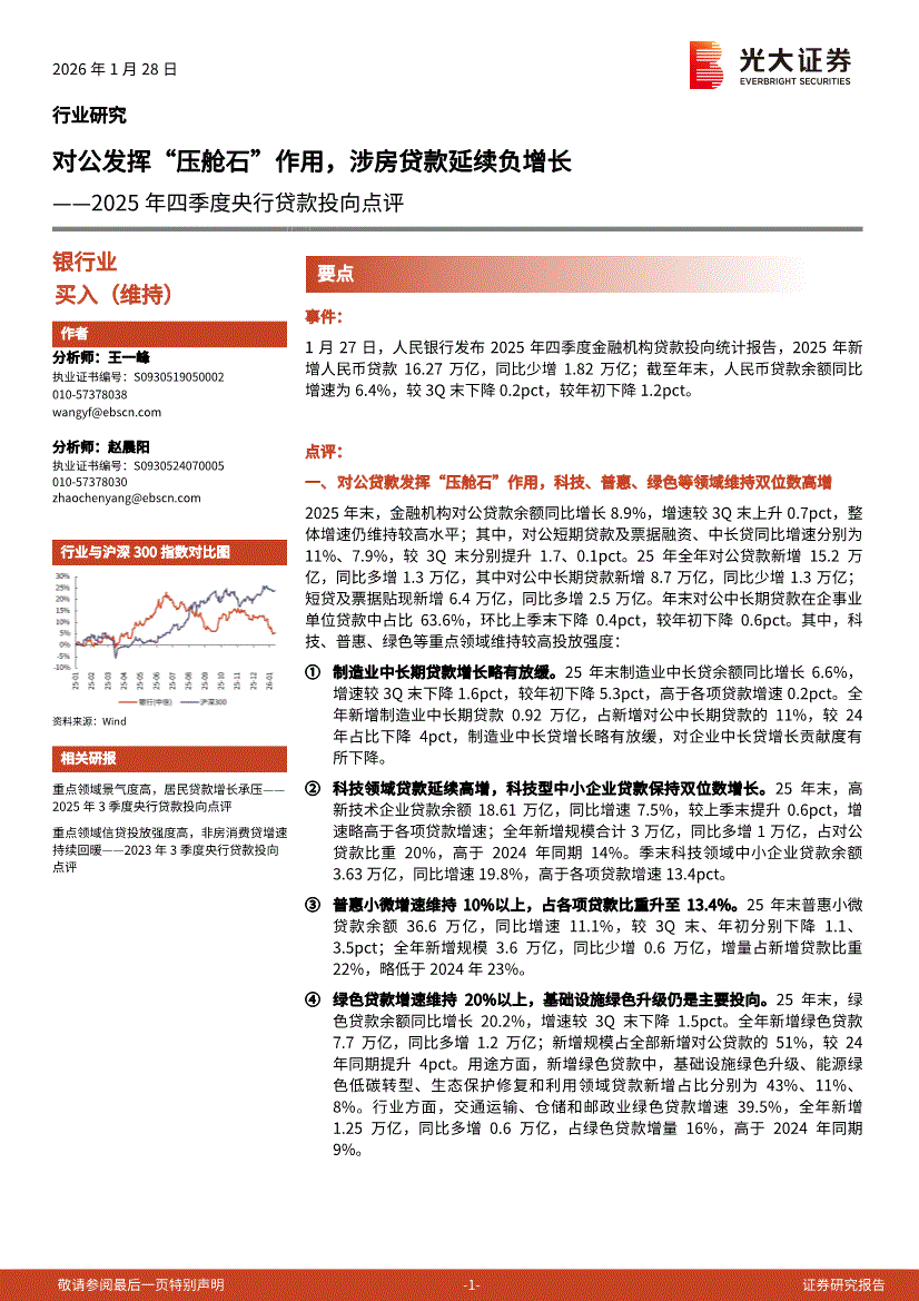 银行业:光大证券-银行业2025年四季度央行贷款投向点评:对公发挥“压舱石”作用,涉房贷款延续负增长-260128