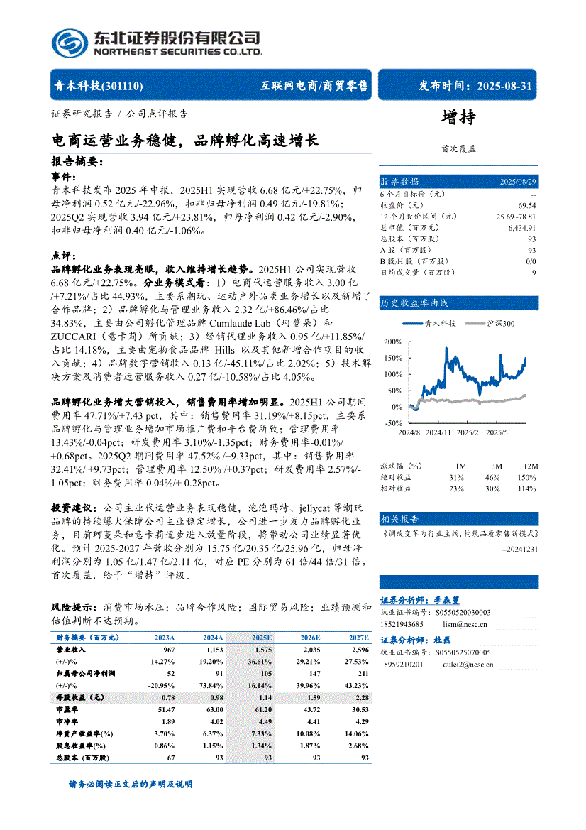 青木科技:东北证券-青木科技-301110-电商运营业务稳健,品牌孵化高速增长-250831