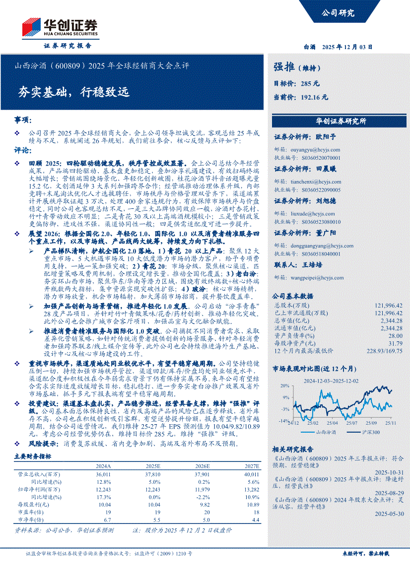 山西汾酒:华创证券-山西汾酒-600809-2025年全球经销商大会点评:夯实基础,行稳致远-251203