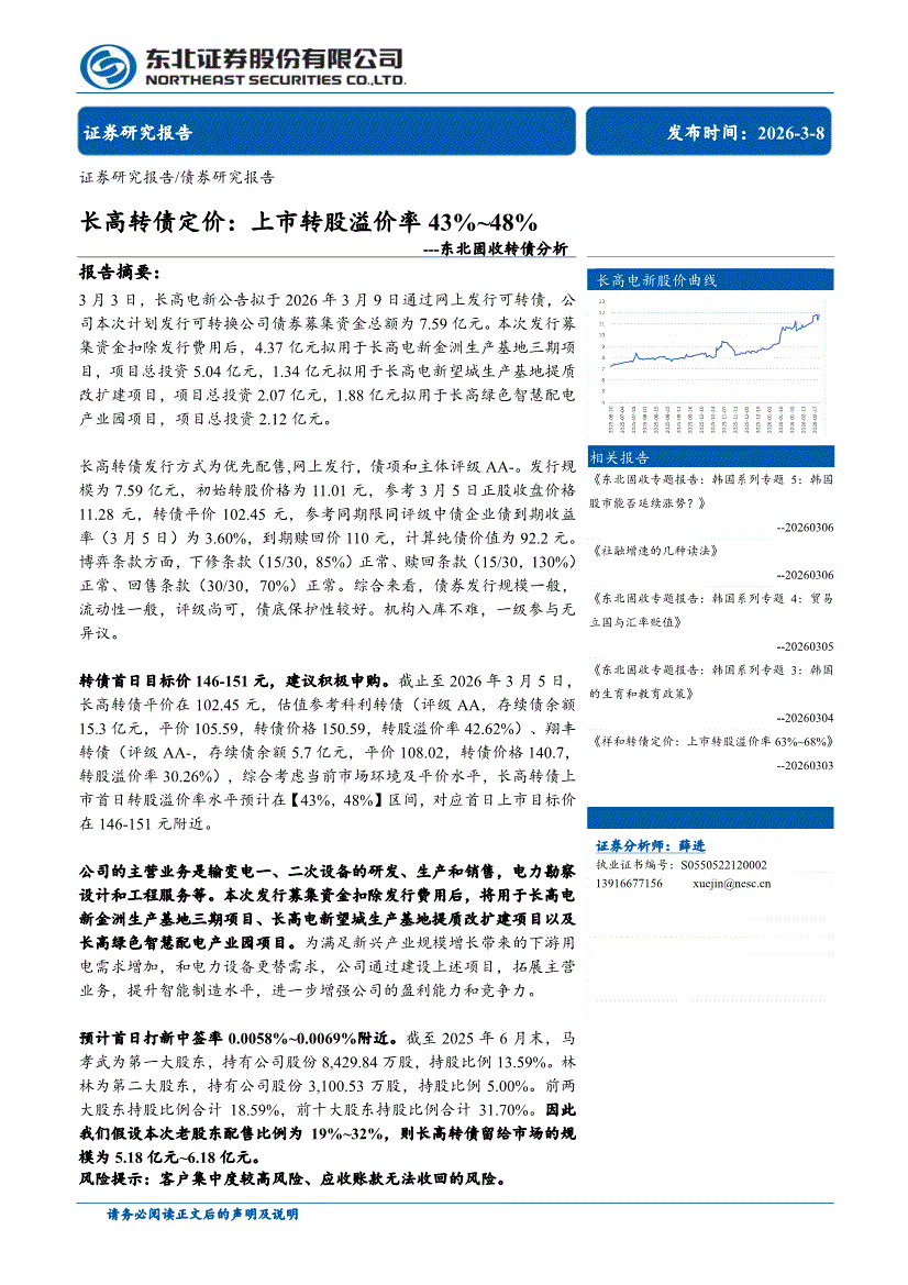 东北证券-固收转债分析:长高转债定价,上市转股溢价率43%~48%-260308