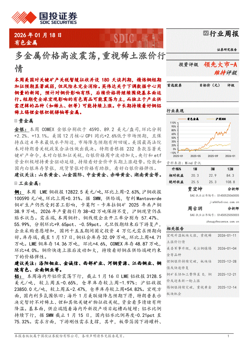 有色金属行业:国投证券-有色金属行业周报:多金属价格高波震荡,重视稀土涨价行情-260118