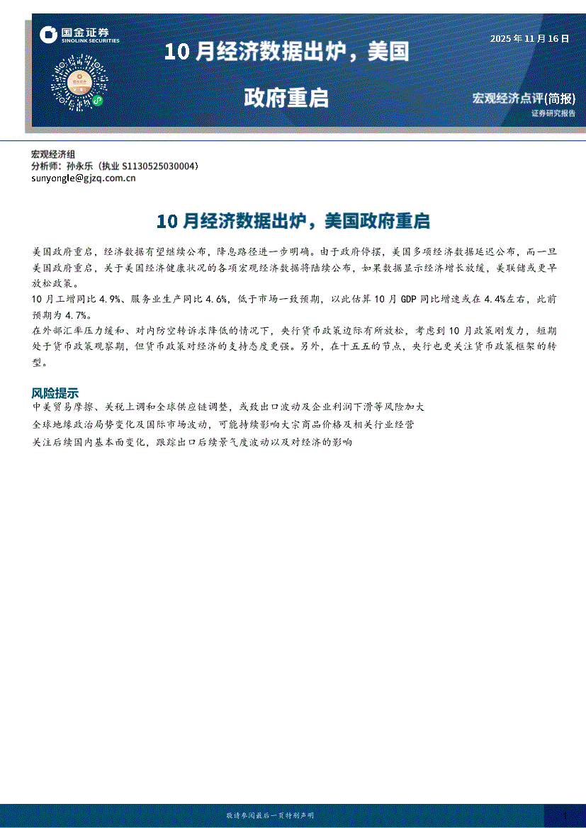 国金证券-10月经济数据出炉,美国政府重启-251116