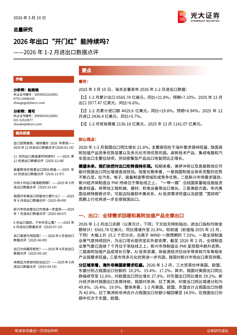 光大证券-2026年1~2月进出口数据点评:2026年出口“开门红”能持续吗?-260310
