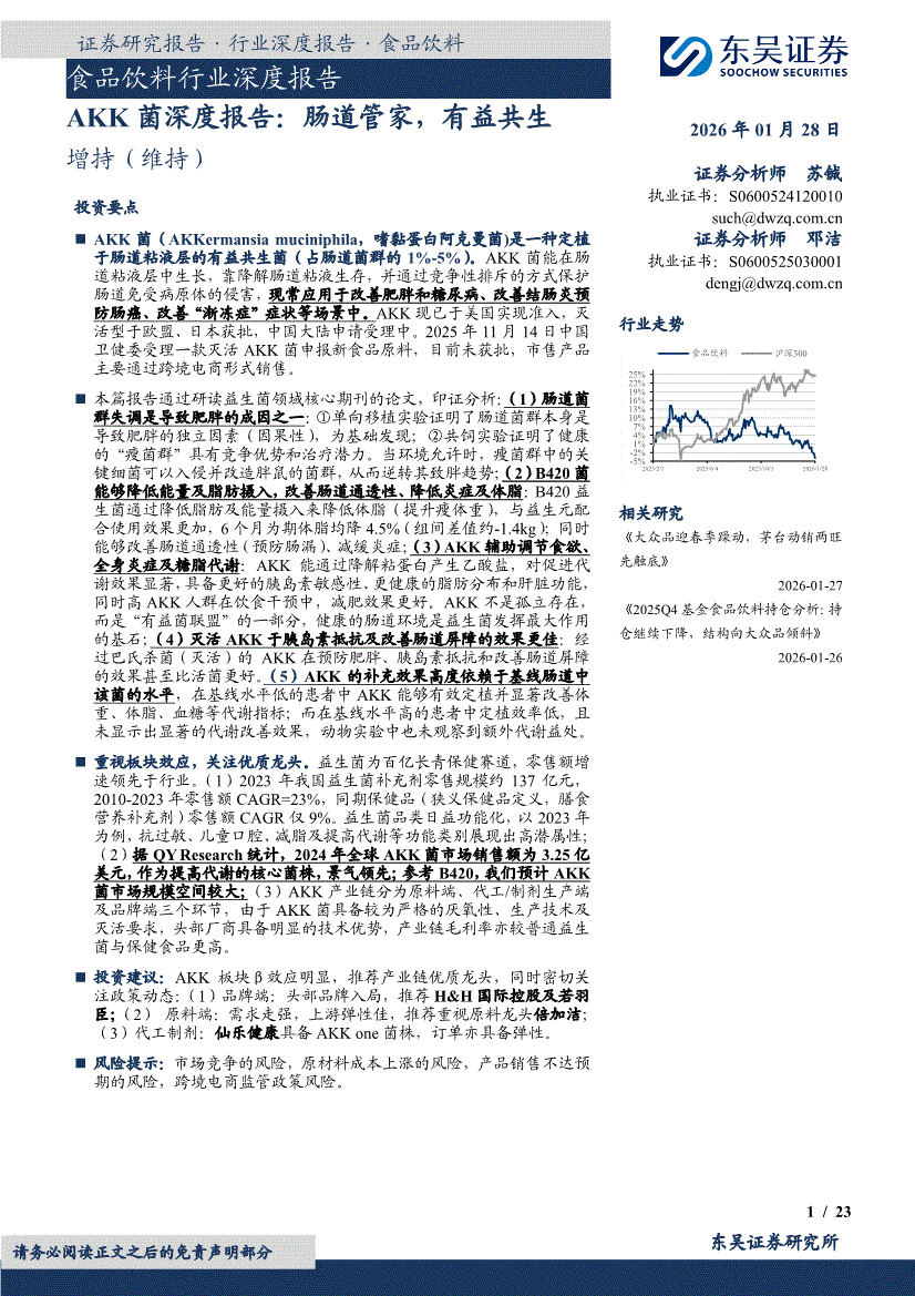 食品饮料行业:东吴证券-食品饮料行业深度报告:AKK菌深度报告,肠道管家,有益共生-260128