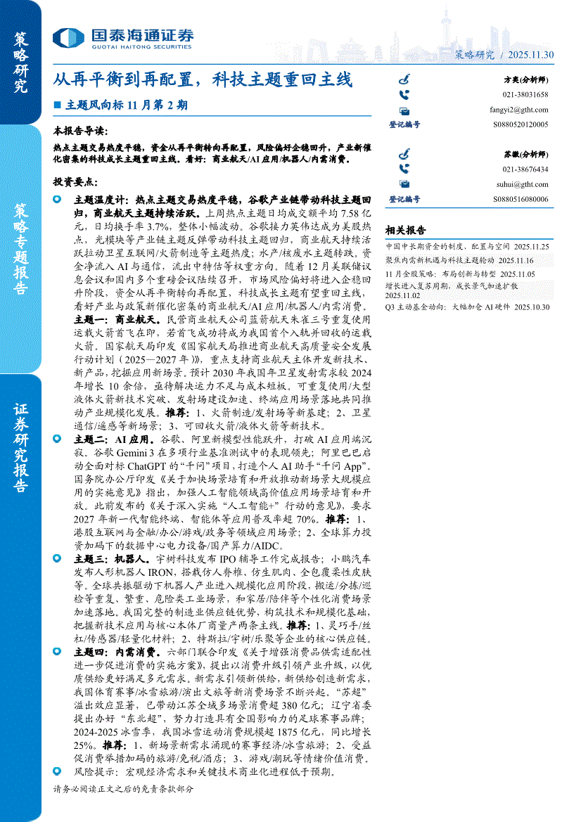 国泰海通证券-主题风向标11月第1期:聚焦内需新机遇与科技主题轮动-251116