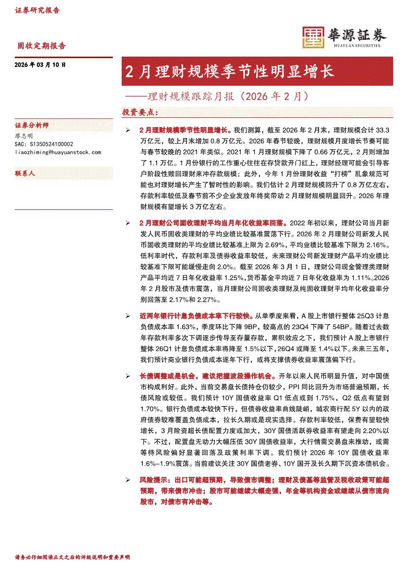 华源证券-理财规模跟踪月报(2026年2月):2月理财规模季节性明显增长-260310