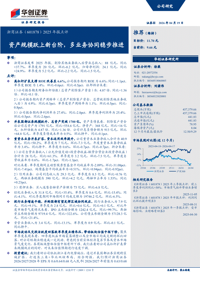 浙商证券:华创证券-浙商证券-601878-2025年报点评:资产规模跃上新台阶,多业务协同稳步推进-260419