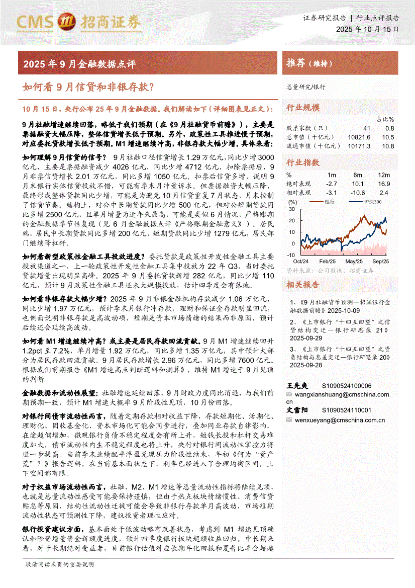 银行业:招商证券-银行业2025年9月金融数据点评:如何看9月信贷和非银存款?-251015