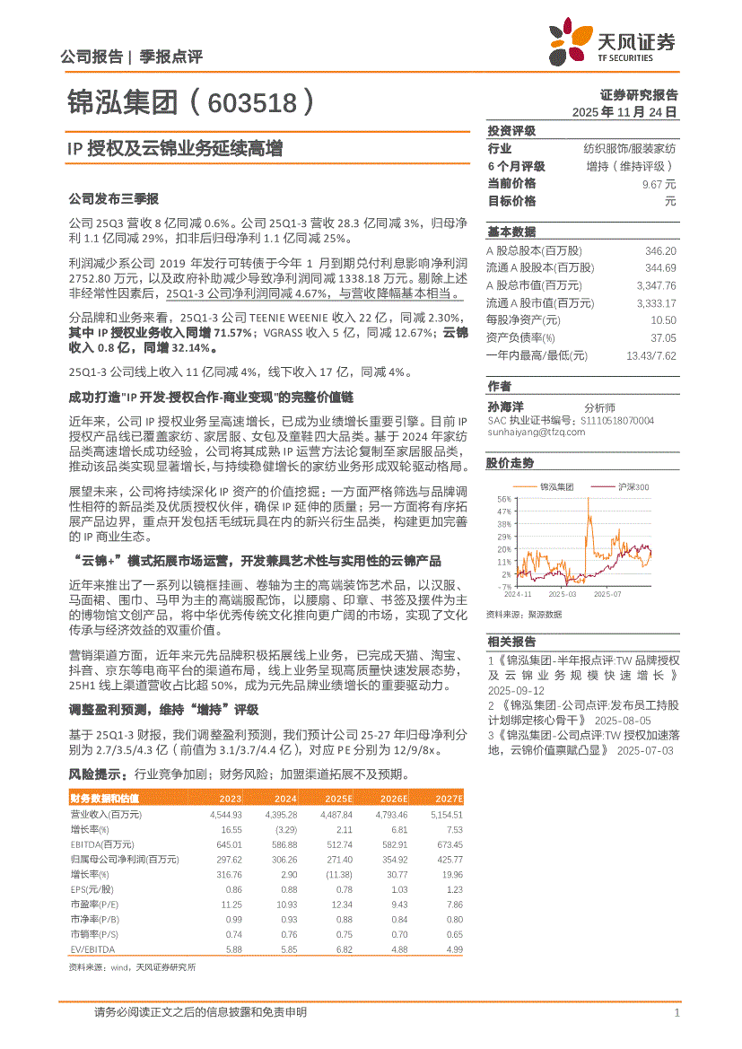锦泓集团:天风证券-锦泓集团-603518-IP授权及云锦业务延续高增-251124