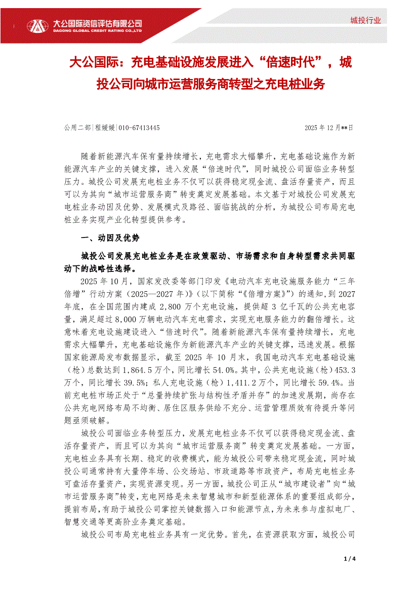 大公国际-充电基础设施发展进入“倍速时代”,城投公司向城市运营服务商转型之充电桩业务-251225