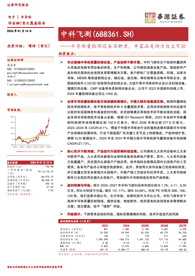 中科飞测:华源证券-中科飞测-688361-半导体量检测设备深耕者,丰富品类助力自主可控-260116