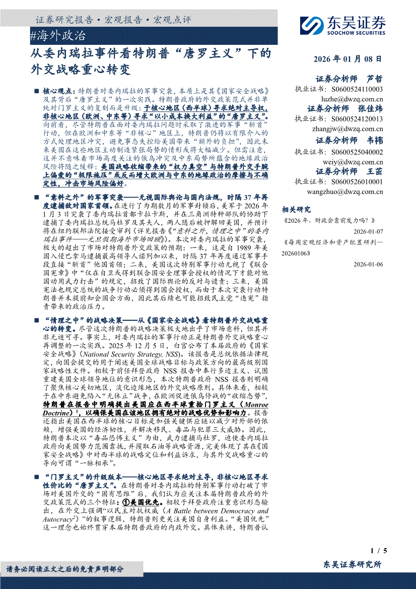 东吴证券-海外政治:从委内瑞拉事件看特朗普“唐罗主义”下的外交战略重心转变-260108
