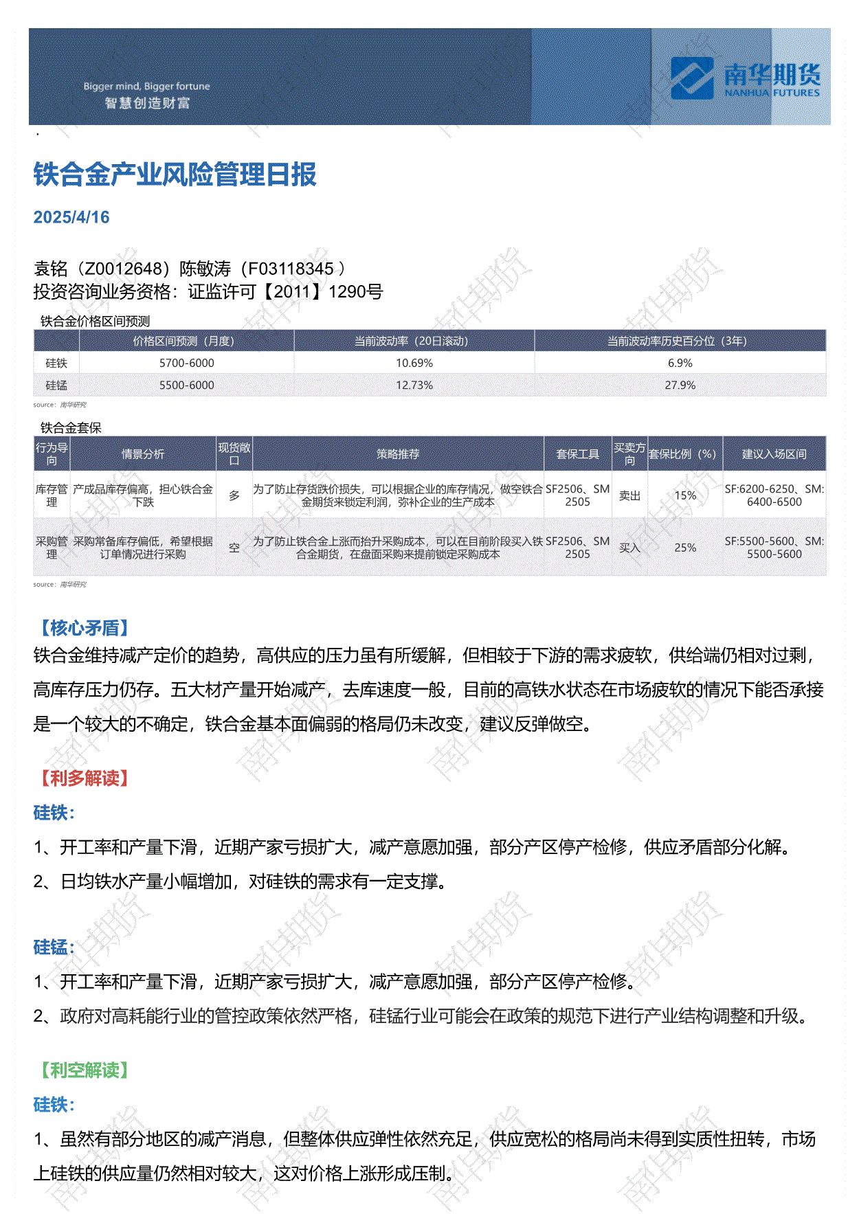 南华期货-铁合金产业风险管理日报-250416