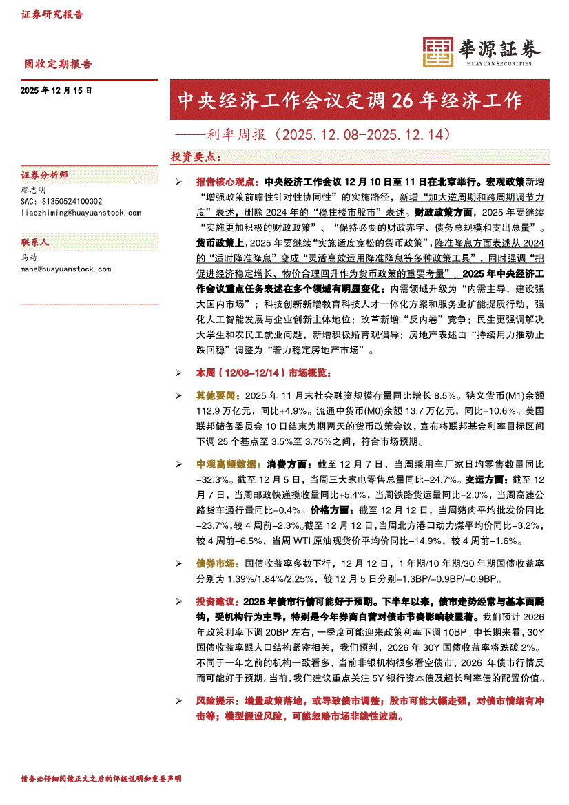 华源证券-利率周报:中央经济工作会议定调26年经济工作-251215