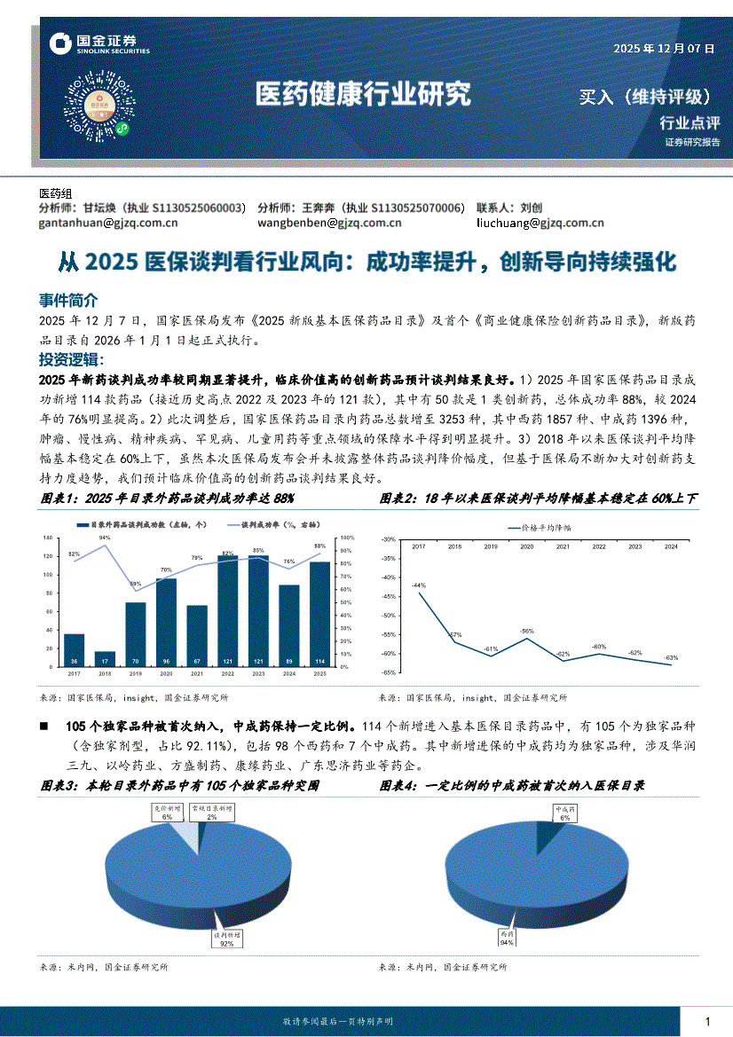 医药健康行业:国金证券-医药健康行业:从2025医保谈判看行业风向,成功率提升,创新导向持续强化-251207