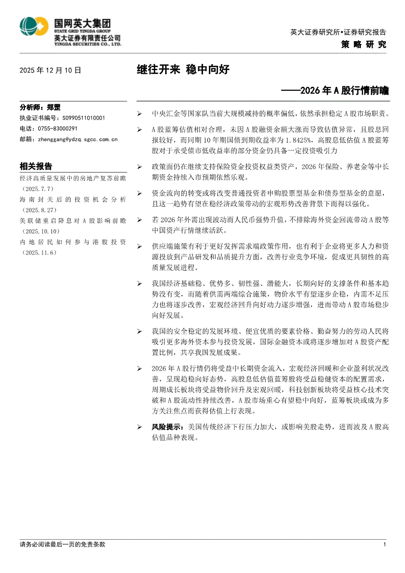 英大证券-2026年A股行情前瞻:继往开来,稳中向好-251210
