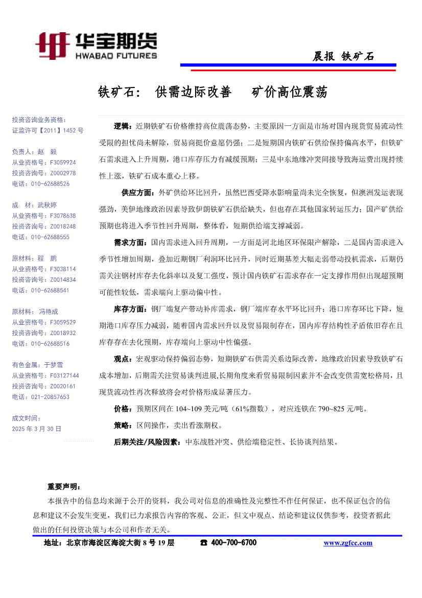 华宝期货-铁矿石晨报:供需边际改善,矿价高位震荡-260330