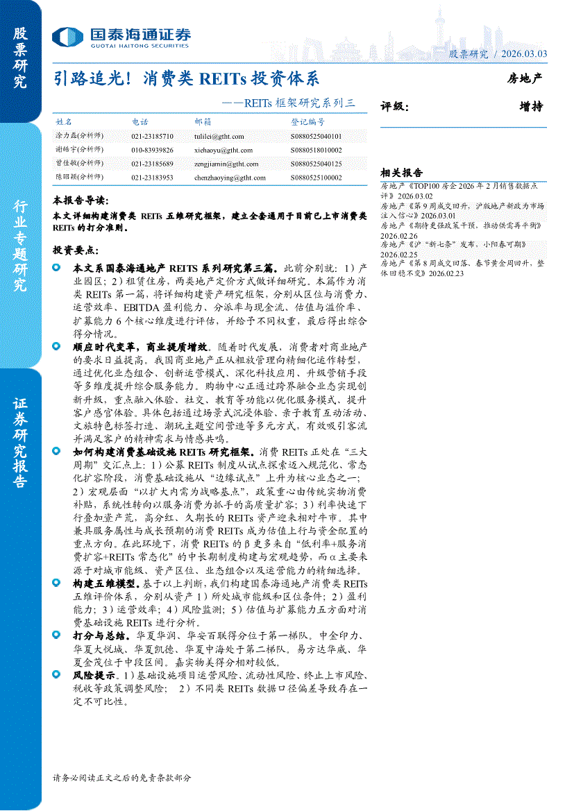 房地产行业:国泰海通证券-房地产行业REITs框架研究系列三:引路追光!消费类REITs投资体系-260303