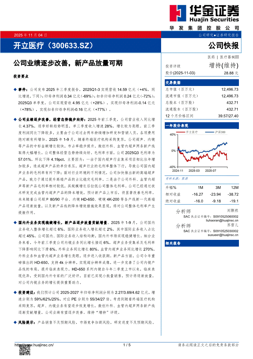 开立医疗:华金证券-开立医疗-300633-公司业绩逐步改善,新产品放量可期-251104