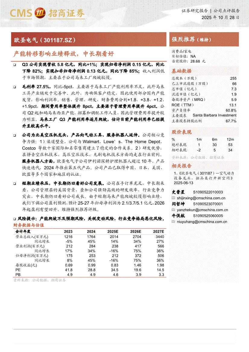 欧圣电气:招商证券-欧圣电气-301187-产能转移影响业绩释放,中长期看好-251028