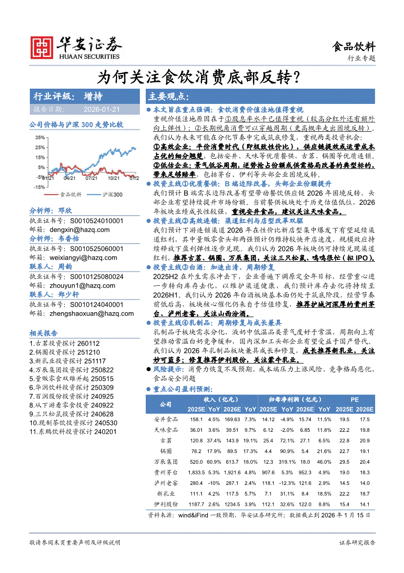 食品饮料行业:华安证券-食品饮料行业专题:为何关注食饮消费底部反转?-260116