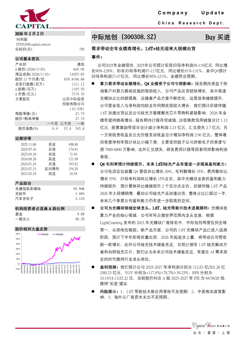 中际旭创:群益证券-中际旭创-300308-需求带动全年业绩高增长,1.6T+硅光迎来大规模出货-260202